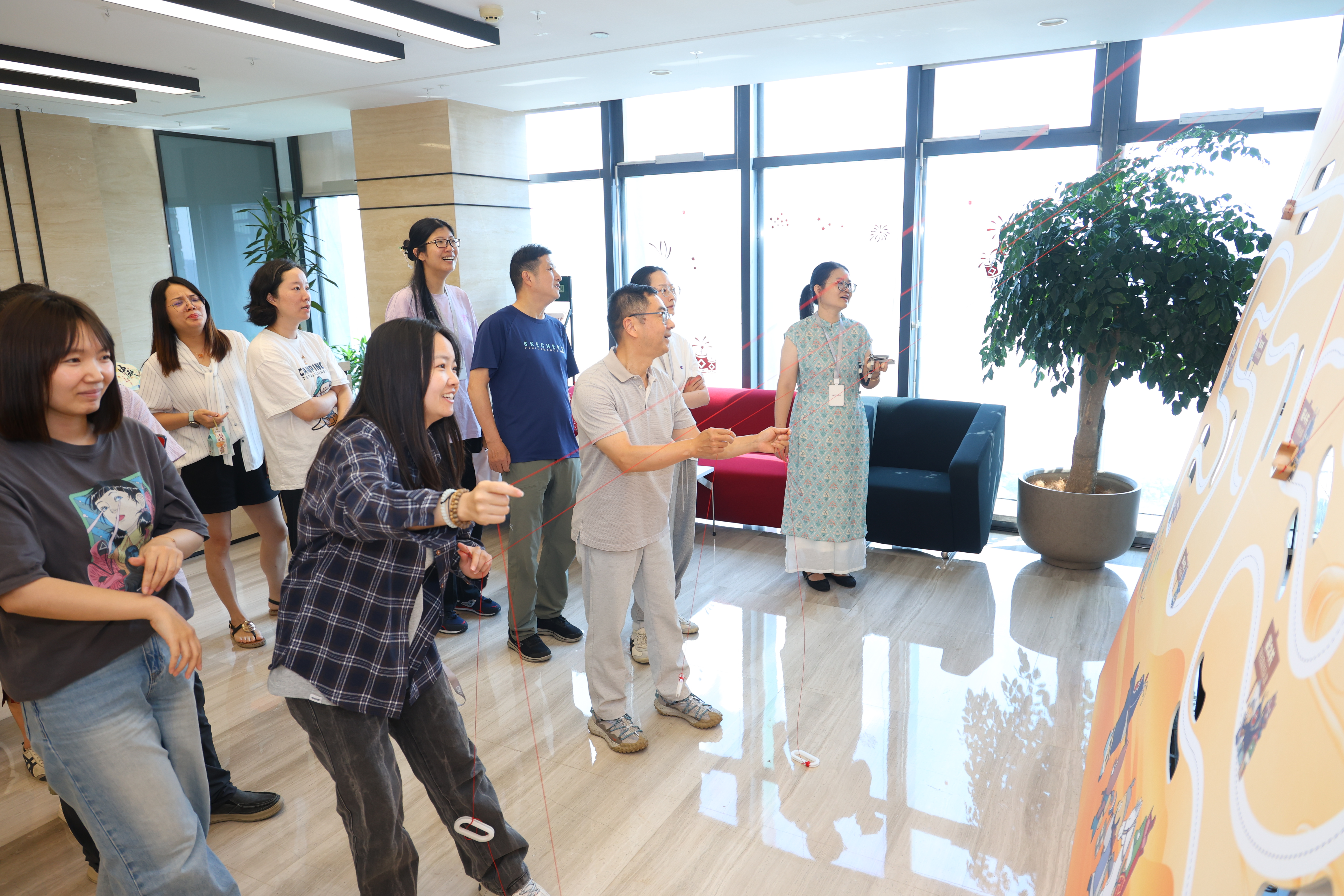 9月26日中午,“游園打卡”互動(dòng)體驗(yàn)將節(jié)日氛圍推向高潮?;顒?dòng)在漢嘉國(guó)際辦公區(qū)設(shè)置了中秋猜謎、疊疊樂(lè)、平衡取經(jīng)、蒙眼貼畫、投壺、體力大闖關(guān)等六個(gè)趣味游戲。員工們踴躍參與,在各個(gè)游戲中穿梭挑戰(zhàn),成功的歡呼與善意的調(diào)侃交織,匯成一片歡聲笑語(yǔ)的海洋。同時(shí),漢嘉國(guó)際、泛海國(guó)際、綠地商業(yè)中心等處精心準(zhǔn)備的各式茶點(diǎn),為活動(dòng)更添一份甜蜜。